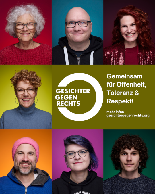 Gemeinsam mit „Gesichter gegen Rechts“ setzen wir ein klares Zeichen gegen Rechts – mit Deinem Gesicht! Komm zu unserem Fotoshooting und werde Teil der Bewegung. Gemeinsam zeigen wir Haltung und setzen ein starkes Statement für Vielfalt, Demokratie und Toleranz.